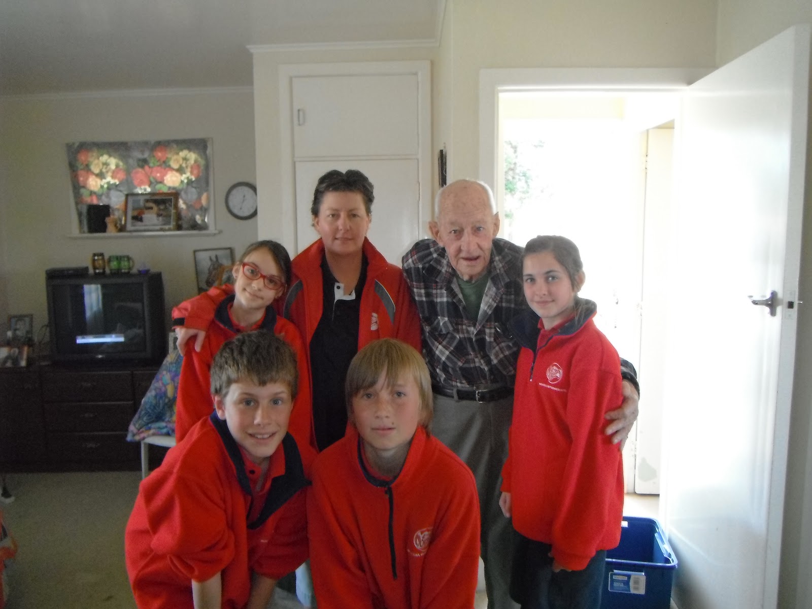Here is a photo of some of our class members and Mr Hayes who has been used and stolen from by teenagers in Rotorua so we fundraised for him and also gave him some GOODIES !